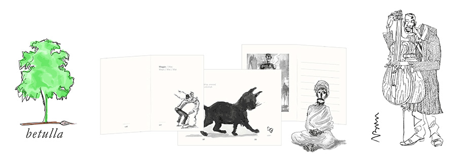Betulla è una collana di libretti d’artista, interamente realizzati con carta e cartoncino riciclati certificati FSC, multilingua (italiano, inglese, spagnolo, francese, tedesco) dedicati all’annotazione e al rapporto fra disegno e parola. Betulla valorizza la naturale propensione ad annotare su carta un pensiero, un appuntamento, una fantasia, un’idea, una paura, e invita a interagire con le sue pagine, a volte bianche o a righe, altre volte popolate da parole, disegni e illustrazioni di un artista sempre diverso. Betulla accoglie la trama accennata di un racconto che ognuno potrà continuare, o cancellare e riscrivere, per dare vita a un particolarissimo taccuino senza tempo.