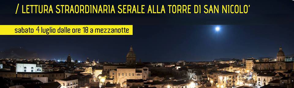 Nuova iniziativa a cui aderiscono le case editrici palermitane Corrimano Edizioni, Glifo Edizioni, il Palindromo e Apertura a strappo, della rete Editori allo scoperto, in collaborazione con Terradamare | Cooperativa Turistica --> /Lettura straordinaria serale alla Torre di San Nicolò, con Editori allo scoperto fino a mezzanotte.Ticket: € 3 – ingresso gratuito per chi compra un libro